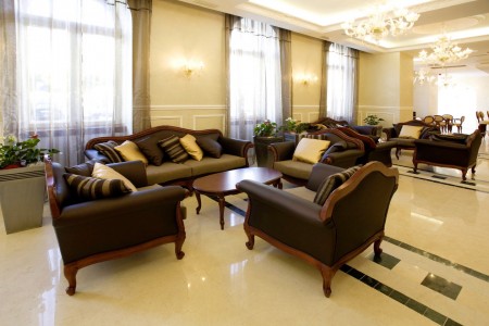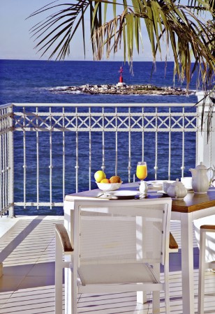 Junior Suite: ca. 20-26 m², großes Doppebette (200x200 cm), gemütlicher Sitzbereich. Die Junior Suiten befinden sich im 1., 2. oder 4. Stock und liegen zur Meerseite.