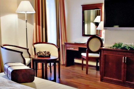 Superior Zimmer: ca. 20-26 m², mit Doppelbett (160x200 cm) oder zwei Einzelbetten (je 90x200 cm)m auch buchbar mit Balkon. Zustellbett möglich.