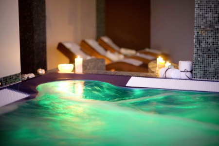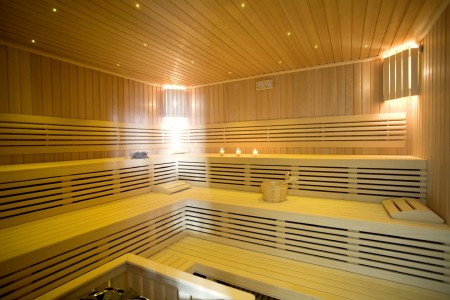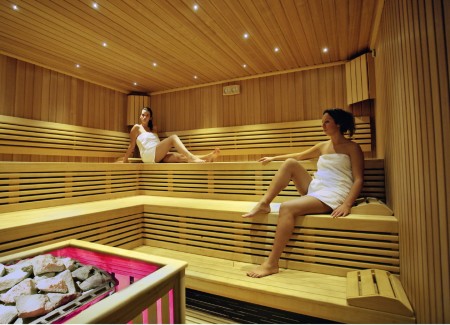 Wellness-Center: Sauna, Dampfbad, Whirlpool und Relaxbereich. Verschiedene Massagen und Körperbehandlungen gegen Gebühr.