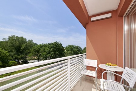 Doppelzimmer: ca. 18-24 m². Wahlweise auch buchbar mit französischem Bett oder mit Balkon zur Meerseite und/oder Zustellbett.