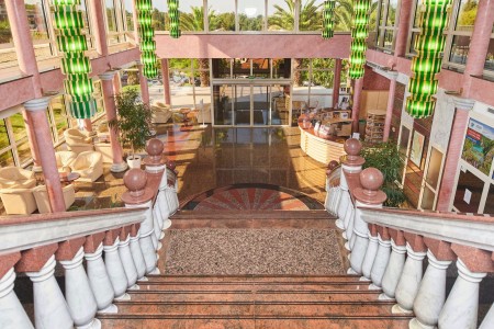 Zu dem auf einem Hügel gelegenen Hotel führen Stufen.