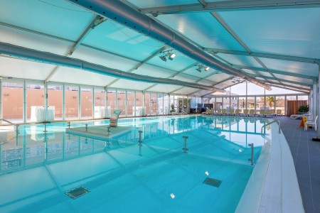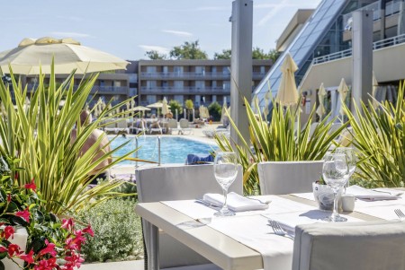 Einrichtungen: Restaurant, Aperitifbar, Fernsehraum, Souvenir- und Zeitschriftenkiosk, Friseursalon, kleines Fitness-Center, Kinderspielraum, Mini-Club, Kinderspielplatz, Fahrrad-Abstellraum. Zwei Süßwasser-Swimmingpools mit separatem Kinderbecken, Sonnenterrasse und Liegestühlen (kostenlos, begrenzte Anzahl), Badetücher am Pool gegen Kaution erhältlich. Animationsprogramm im Zeitraum Ende Mai bis Anfang September. Bewachte und versicherte Parkplätze (ca. 1,50 € pro Tag). WiFi-Internet im gesamten Hotel verfügbar (kostenlos).
