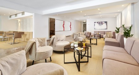 Einrichtungen: Lobby mit Rezeption, Safe (gegen Gebühr), Aperitif-/Cafébar und Sitzecken, Restaurant, Süßwasser-Swimmingpool mit separatem Kinderbecken, Sonnenterrasse und Liegestühlen (kostenlos, begrenzte Anzahl). Bewachter Parkplatz gegen Gebühr (2 € pro Tag). WiFi-Internet im gesamten Hotel verfügbar (kostenlos).