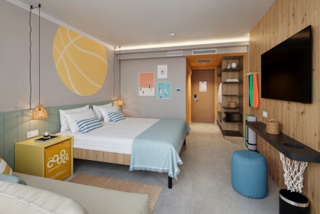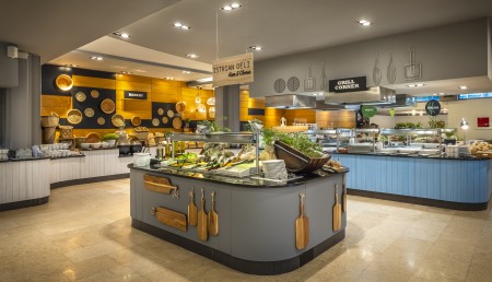 Einrichtungen: Hauptrestaurant mit Show-Cooking, à-la-carte Restaurant "Oliva Grill", Sunny-Bar, Valfresco Vitrine 24/7 mit Sandwiches, Salaten und Desserts, digitale Bibliothek, neue Play-Zone mit Smart Play und Soft Play Spielbereichen, Game Lounge mit Spielekonsolen, voraussichtlich zu Ende Juni 2026 neu eröffneter "Aquamar" Wasserpark mit 5 verschiedenen Meerwasser- und Süßwasser-Pools mit insgesamt 1.378 m² Wasserfläche, darunter Relax- und Activity-Pool sowie separate Baby-und Kinderpools mit Wasserspielen und 5 Wasserrutschen sowie großer Sonnenterrasse mit Pool Bar, Sonnenschirme und Liegestühle (im Preis enthalten, begrenzte Anzahl). Bewachter, teilweise beschatteter Parkplatz (gegen Gebühr; 3 € pro Tag). WiFi-Internet im gesamten Hotel verfügbar (kostenlos).