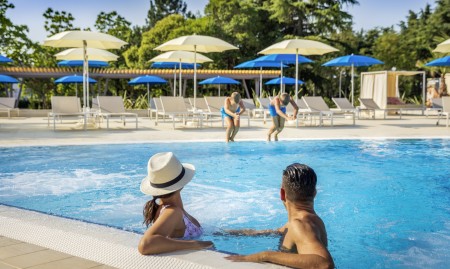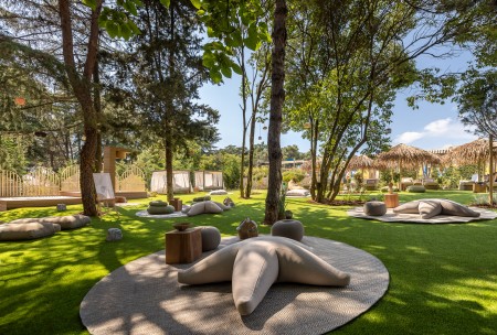 Strand: Zum Fels- und Kiesstrand „Val Parentino Family Beach“ mit schattigen Liegewiesen, betonierten und sandigen Liegeflächen, Grillrestaurant, Snackbar und Loungebar sind es 300 m durch den Wald. Liegestühle, Sonnenschirme und Beach Cabañas gegen Gebühr.
