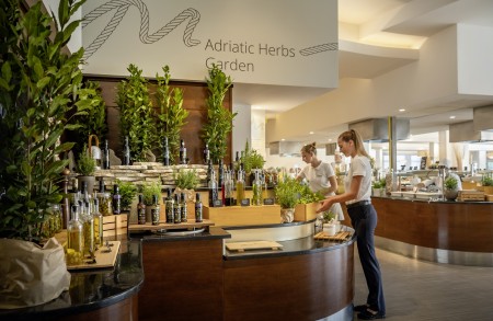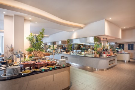 Verpflegung: Frühstücksbuffet. Halbpension PLUS mit reichhaltigem Abendbuffet mit Show-Cooking gegen Aufpreis buchbar. Gelegentlich Themen-Abendessen (Juni bis September).