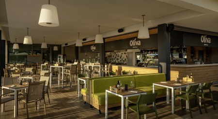 Einrichtungen: Lobby mit Bar und Terrasse (große Auswahl an Getränken, Sandwiches und Kuchen), Arztpraxis, Buffet-Restaurant „Mediterraneo“ mit Show-Cooking und großer Terrasse, Restaurant „Oliva“ mit einer großen Auswahl an Getränken und Cocktails sowie leichten Mittagsgerichten, Süßwasser-Swimmingpool-Komplex mit Aktivitäten-Pool und Poolbar sowie zwei Wasserrutschen, beheizbarem Baby-Pool mit Wasserattraktionen, Relax-Pool, Liegestühlen und Sonnenschirmen (begrenzte Anzahl, kostenlos), sowie einer großen Sonnenterrasse mit Relax-Zone und Ruhebereich. Abwechslungsreiches Animationsprogramm im Zeitraum 15.06.-01.09. mit sportlichen Aktivitäten und Unterhaltung für Erwachsene und Kinder verschiedener Altersgruppen, Teens Lounge (13-17 Jahre) mit Playstation, Maro Club (Mini Club 0-6 Jahre, Maxi Club 7-12 Jahre), Kinderspielplatz, Verleih von Play Station. Fahrradraum, bewachter, teilweise beschatteter Parkplatz (gegen Gebühr; ca. 3 € pro Tag). In der Saison fährt eine Minibahn zur Altstadt (gebührenpflichtig). WiFi-Internet im gesamten Hotel verfügbar (kostenlos).