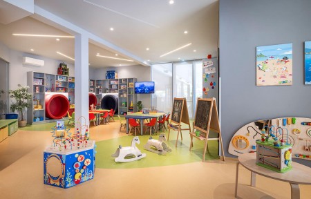 Einrichtungen: Lobby mit Bar und Terrasse (große Auswahl an Getränken, Sandwiches und Kuchen), Arztpraxis, Buffet-Restaurant „Mediterraneo“ mit Show-Cooking und großer Terrasse, Restaurant „Oliva“ mit einer großen Auswahl an Getränken und Cocktails sowie leichten Mittagsgerichten, Süßwasser-Swimmingpool-Komplex mit Aktivitäten-Pool und Poolbar sowie zwei Wasserrutschen, beheizbarem Baby-Pool mit Wasserattraktionen, Relax-Pool, Liegestühlen und Sonnenschirmen (begrenzte Anzahl, kostenlos), sowie einer großen Sonnenterrasse mit Relax-Zone und Ruhebereich. Abwechslungsreiches Animationsprogramm im Zeitraum 15.06.-01.09. mit sportlichen Aktivitäten und Unterhaltung für Erwachsene und Kinder verschiedener Altersgruppen, Teens Lounge (13-17 Jahre) mit Playstation, Maro Club (Mini Club 0-6 Jahre, Maxi Club 7-12 Jahre), Kinderspielplatz, Verleih von Play Station. Fahrradraum, bewachter, teilweise beschatteter Parkplatz (gegen Gebühr; ca. 3 € pro Tag), Ladestation für E-Autos (gegen Gebühr). In der Saison fährt eine Minibahn zur Altstadt (gebührenpflichtig). WiFi-Internet im gesamten Hotel verfügbar (kostenlos).