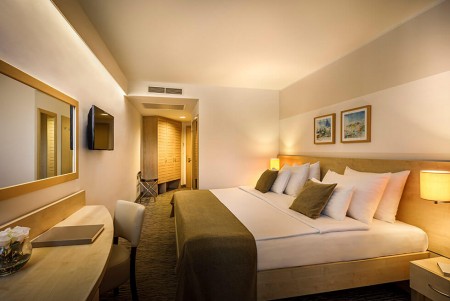 Doppelzimmer Superior: ca. 22-28 m², im neuen Flügel gelegen, ein Doppelbett, zusätzliches Schlafsofa (190x80 cm) für eine Person, Balkon zur Parkseite oder zur Meerseite.
