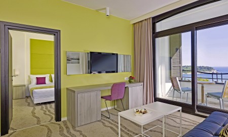 Suite: ca. 38-45 m², ein Schlafzimmer, separates Wohnzimmer mit Schlafsofa, Badezimmer mit Massage-Dusche, hochwertige Kaffeemaschine, Bose Sound Dock System, Bügeleisen und Bügelbrett sowie Hausschuhe und Bademäntel und Balkon zur Meerseite. Bei Ankunft frisches Obst und Wasser.