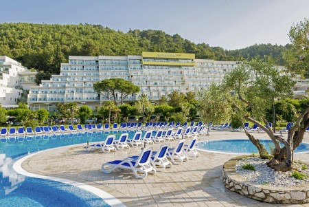 Das terrassenförmig angelegte Hotel, das mit den Hotels Hedera und Narcis eine Hotelanlage bildet, liegt in der geschützten Bucht „Maslinica“ unweit des kleinen Ortszentrums.