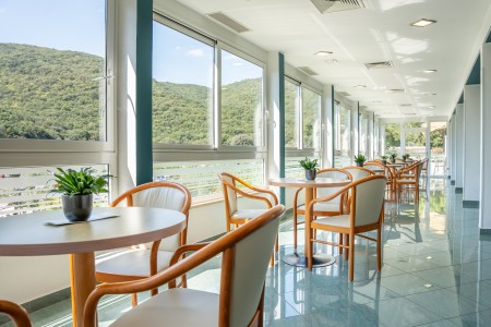 Das terrassenförmig angelegte Hotel, das mit den Hotels Mimosa-Lido Palace und Hedera eine Hotelanlage bildet, liegt in der geschützten Bucht „Maslinica“ unweit des kleinen Ortszentrums.