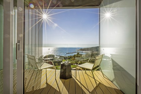 Grand Zimmer: ca. 34-37 m², zwei Einzelbetten (je 110x210 cm) sowie ein Schlafsofa (160x200 cm), Dusche/WC, Balkon zur Meerseite.
