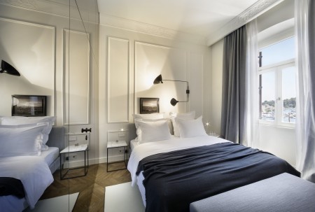 Das luxuriöse Boutique Hotel liegt direkt am Hauptplatz und dem Hafen der Stadt Rovinj. Geschäfte, Cafés und Restaurants finden Sie in unmittelbarer Umgebung. Das Gebäude wurde im Jahr 1912 erbaut und vereint heute sehr geschmackvoll Geschichte mit zeitgenössischer und moderner Kunst.