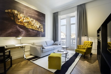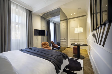 18 Zimmer: luxuriös eingerichtet mit Kunstwerken bekannter Künstler, Klimaanlage, Smart TV, Telefon, WiFi-Internet (kostenlos), Minibar, Kaffeemaschine und Teezubereitungsmöglichkeit, Safe, Bad oder Dusche/WC mit Fön. Kinderbett ist auf Anfrage möglich.