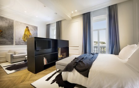Adriatic Suite: ca. 57 m², mit 2 Balkonen mit Blick auf die Altstadt und den Hauptplatz und Hafen, Doppelbett und Sofabett (160 x 190 cm), zwei Smart TVs, Dusche und Badewanne.