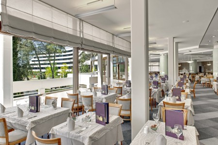 Einrichtungen: Buffet-Restaurant, à-la-carte Restaurants „Burin" und „Oleander", Aperitifbar, Seminarraum, Kongresssaal, Saal für Veranstaltungen mit Bühne und Bar, Zeitungskiosk. Meerwasser-Hallenbad, Meerwasser-Swimmingpool mit Kinderbecken, Liegewiesen, Poolbar und Snack-Grill. Liegestühle, Sonnenschirme und Badelaken (gegen Kaution) für Hotelgäste im Preis enthalten. Animationsprogramm, Miniclub, Sommer-Terrasse mit Showbühne für abendliche Unterhaltungsprogramme. Kostenloser Parkplatz (bewacht vom 01.05.-30.09.) 350 Meter vom Hotel entfernt. WiFi-Internet im gesamten Hotel verfügbar (kostenlos).