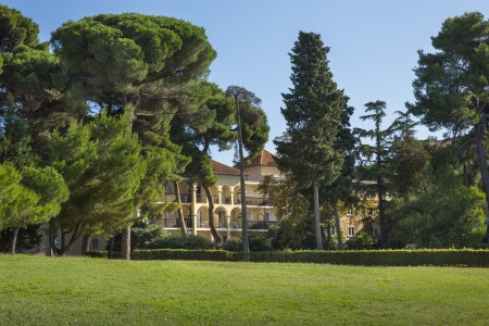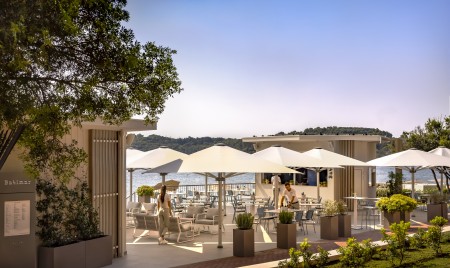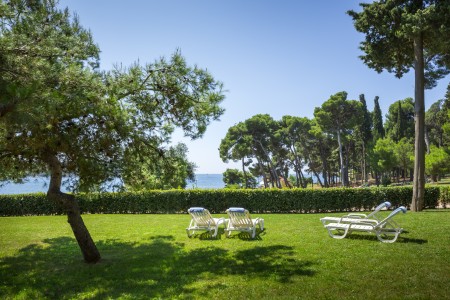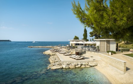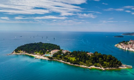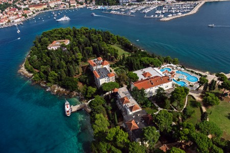 Das um ein altes Schloss erbaute, aus zwei Gebäuden bestehende Hotel liegt auf der gleichnamigen kleinen Insel vor Rovinj. Stündlich von 5:30–00:30 Uhr Bootsverbindung zur Altstadt (5 Minuten Fahrt, im Reisepreis enthalten). Der bewachte Parkplatz befindet sich auf dem Festland und ist ca. 1000 m von der Bootsanlegestelle entfernt. An der Bootsanlegestelle befindet sich auch die Rezeption für Gäste, die mit dem eigenen Auto anreisen.