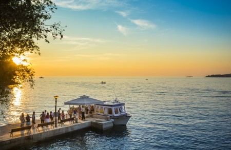 Rovinj, die romantischste Stadt Istriens, wie sie von vielen gerne genannt wird und eine der fotogensten Städte des Mittelmeeres liegt, an der Westküste Istriens. Das Städtchen entstand auf einer kleinen Insel die im Mittelalter mit dem Festland verbunden wurde. Durch seine 1700 Jahre alte Geschichte hinterließen Byzantiner, Ostgoten, Venezianer und Österreicher ihre Spuren in der Architektur des Altstadtkerns, der von der barocken Kirche der Heiligen Eufemija aus dem XVIII Jahrhundert dominiert wird. Der Kirchturm erinnert unverwechselbar an den Kirchturm des Heiligen Markus in Venedig, weshalb Rovinj auch als "Klein Venedig" bezeichnet wird. In der bekanntesten Altstadtgasse „Grisia“ finden sich Kunstgalerien, Ateliers, Restaurants und direkt am Meer gelegene Bars, welche zum Cocktail im Sonnenuntergang mit Blick auf die vorgelagerte Katharineninsel einladen. Ausflugsmöglichkeiten: Venedig, Nationalpark Plitvicer Seen, Nationalpark Brijuni, Kanu-Safari, Fischpicknick, Pula, Istrien-Tour, Adelsberger Grotten & Lipizzaner Gestüt in Slovenien.