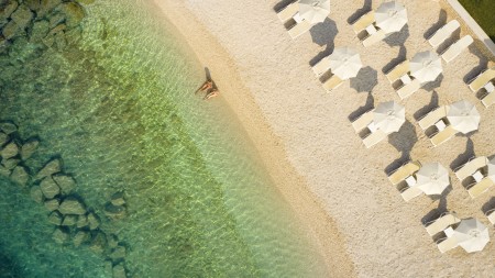 Strand: Die Fels- und Kiesstrände verlaufen rings um die Insel. Liegestühle und Sonnenschirme für Hotelgäste kostenlos, Badetücher gegen Gebühr verfügbar. Snack Bar Batimar am Strand.