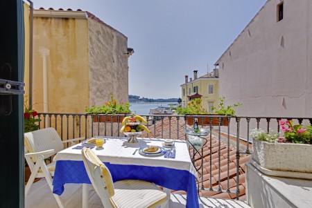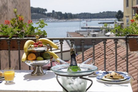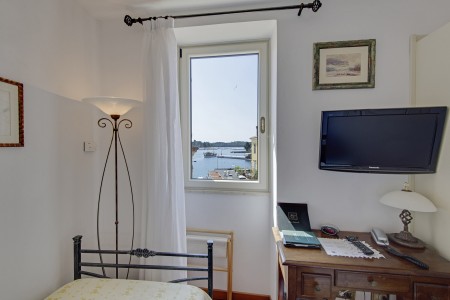 7 Zimmer: gemütlich und geschmackvoll im Landhausstil eingerichtet bieten alle Zimmer Klimaanlage, Safe (gegen Gebühr), Minibar (gegen Gebühr), Telefon, LCD SAT-TV, Bad oder Dusche/WC mit Haarföhn. WiFi-Internet (kostenlos). Room-Service (7-23 Uhr, inklusive). Alle Zimmer verfügen über einen Blick auf den Hafen von Rovinj, die Insel Sveta Katarina und das Meer.