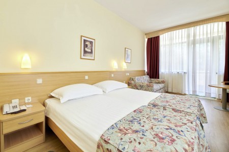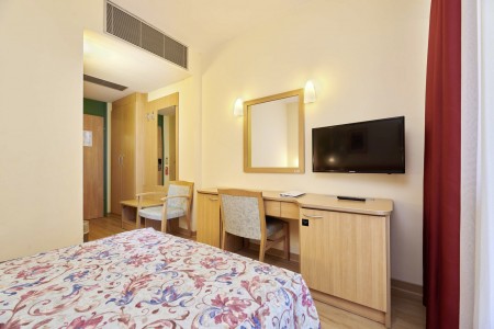 306 Zimmer: komfortabel eingerichtet mit Klimaanlage, SAT-TV, Telefon, WiFi-Internet (kostenlos), Mini-Kühlschrank, Safe, Bad/WC, Föhn und Balkon. Room-Service von 8-22 Uhr. Babybett auf Anfrage möglich (kostenlos).
