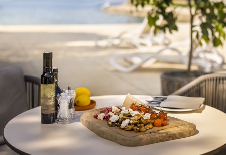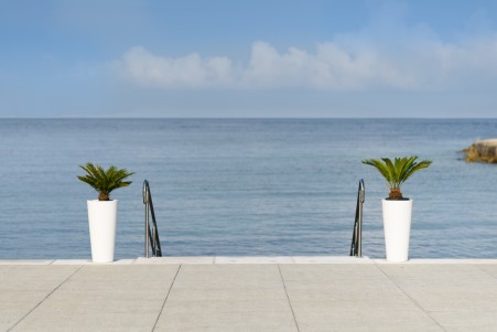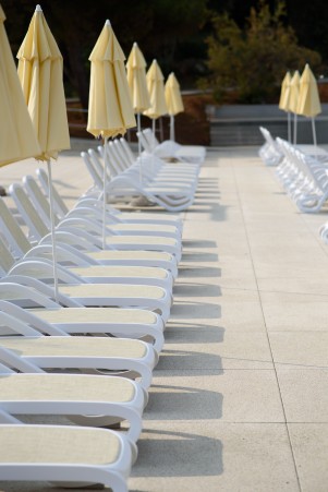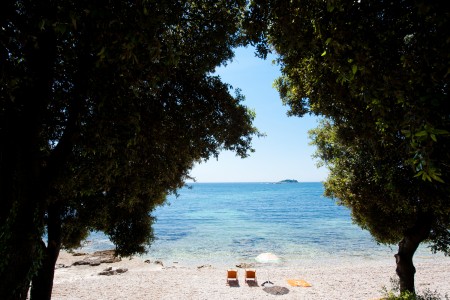 Strand: Zum langen Felsstrand mit betonierten Liegeflächen und einer kleinen Kiesbucht sind es je nach Unterbringung etwa 50-150 m. Sonnenschirme und Liegestühle gegen Gebühr. Außerdem Duschen, Umkleidekabinen und Sonnenterrasse mit Zugang zum Meer.