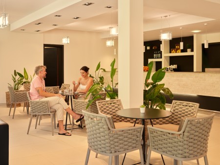 Einrichtungen: Restaurant, Pizzeria, Aperitifbar, Zeitungs- und Souvenirladen, Friseursalon, Beautysalon und Supermarkt. Süßwasser-Swimmingpool mit Kinderbecken, Poolbar und großer Sonnen- und Tanzterrasse. Liegestühle und Sonnenschirme kostenlos (begrenzte Anzahl). Animation für Erwachsene und Kinder im Zeitraum 20.06.-20.09., Miniclub im Zeitraum 01.07.-10.09. mit Kinderbetreung im Spielzimmer von 11 bis 18 Uhr. Unbewachter kostenfreier Parkplatz. WiFi-Internet in der gesamten Ferienanlage verfügbar (kostenlos).