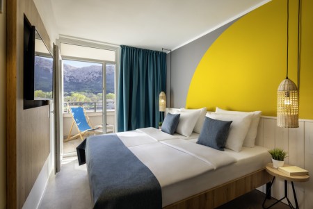 Doppelzimmer Superior: ca. 21-27 m², Doppelbett oder zwei Einzelbetten, Balkon zur Parkseite. Wahlweise auch buchbar mit Schlafsofa.