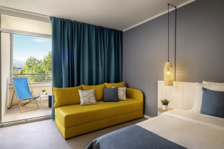 Familienzimmer Superior: ca. 25-34 m², mit Doppelbett oder zwei Einzelbetten und Schlafcouch für zwei Personen, Balkon zur Parkseite.