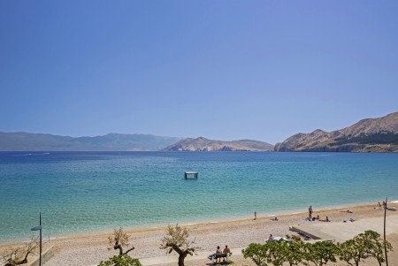 Das Haus mit 8 komfortablen und elegant eingerichteten Zimmern sowie 20 Appartements liegt in Baška direkt am Strand „Vela Plaža“.