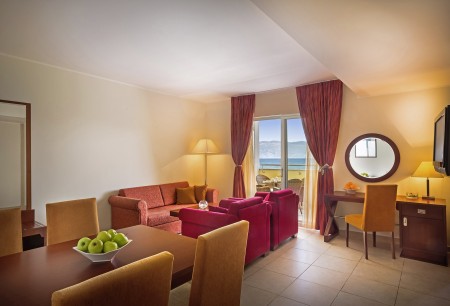 Appartement Meerblick für 4-6 Personen: ca. 54-69 m², LCD-TV, Klimaanlage, Telefon, WiFi-Internet (kostenlos), Safe, zwei Schlafzimmer mit Doppelbett, Bad/WC, Dusche/WC, Wohnzimmer mit Schlafcouch, Küchenzeile mit Herd, Kühlschrank, Mikrowelle und Kaffeemaschine, Essecke, Balkon mit Meerblick.