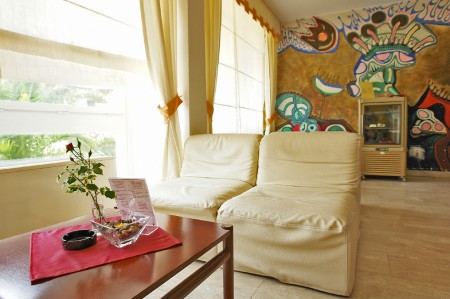 Einrichtungen: Restaurant, Aperitifbar, Fernsehecke, Tanzterrasse, Kinderspielplatz. Gelegentlich Folkloreabende und Konzerte, täglich Tanzmusik. Unbewachter Parkplatz. WiFi-Internet im gesamten Hotel verfügbar (kostenlos).