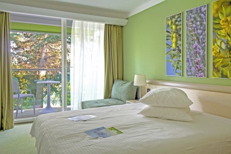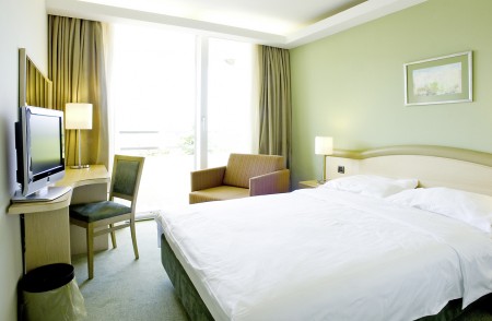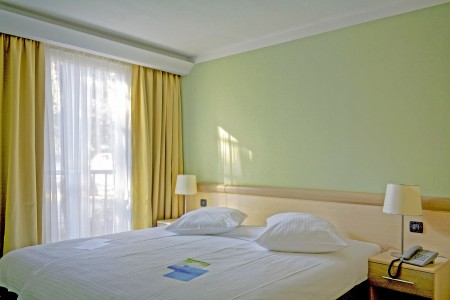 Zimmer im Haupthaus: ca. 20 m², mit Minibar, SAT-TV, Klimaanlage, Telefon, WiFi-Internet (kostenlos), Dusche/WC und Balkon. Wahlweise buchbar zur Meerseite und mit Zustellbett für ein Kind bis 11,99 Jahre. Babybett auf Anfrage (gegen Gebühr, 10 € pro Tag) möglich.