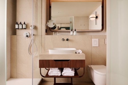 V Level Suite: ca. 39 m², bestehen aus zwei separaten Schlafzimmern und einem Wohnbereich mit Sofa. Wahlweise buchbar zur Parkseite oder zur Meerseite
