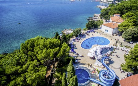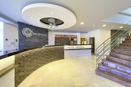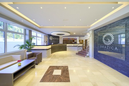 Einrichtungen: Rezeption, Wechselstube, Souvenirshop, klimatisiertes Buffet-Restaurant und à la Carte Restaurant mit Terrasse im Hotel Dražica, Bar in der Villa Lovorka, Cocktailbar mit Terrasse, Poolbar, Süßwasser-Swimmingpool für Erwachsene, Süßwasser-Swimmingpool mit Aquagun für Kinder, Sonnenterrasse mit Liegestühlen und Sonnenschirmen (gegen Gebühr). In der Saison abendliches Unterhaltungsprogramm mit Live-Musik und Tanz, ganztägiges Animationsprogramm für Kinder und Erwachsene (Juli bis August). WiFi-Internet in der gesamten Hotelanlage verfügbar (kostenlos). Parkplatz in der Hotelanlage (kostenlos).