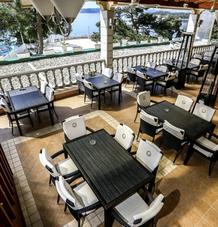 Strand: Der Felsstrand mit Badeplateaus und Bistro liegt direkt vor dem Hotel. In der Nähe gibt es auch Kiesstrände und einen Strand mit sandigem Meeresgrund und Sonnenterrasse (ca. 100 m).