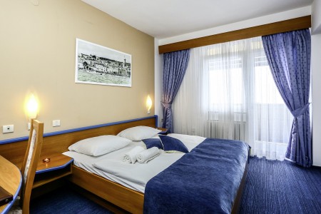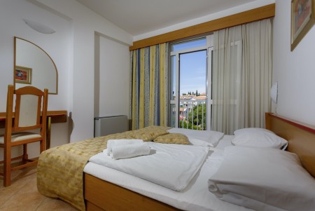 137 Zimmer im Hotel Dražica: mit Klimaanlage/Heizung, LCD SAT-TV, Telefon, WiFi-Internet (kostenlos), Safe und Dusche/WC. Babybett auf Anfrage (gegen Gebühr, 8 € pro Tag) möglich.
