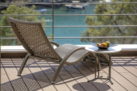 Augusta Grand Suite: ca. 90 m², zwei Doppelzimmer mit Meerblick, separates Wohnzimmer mit Esstisch, zwei Badezimmer mit Badewanne, Dusche und WC, drei Balkone.