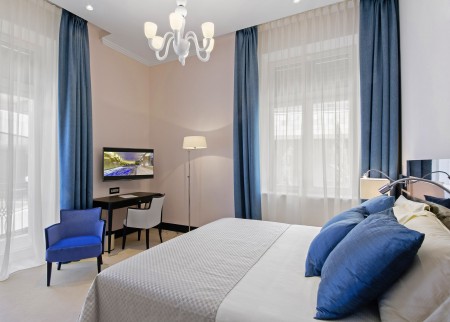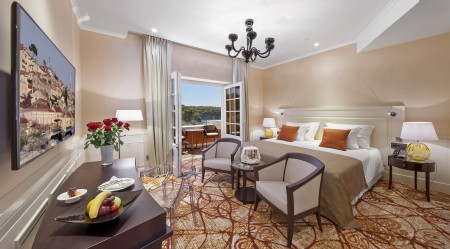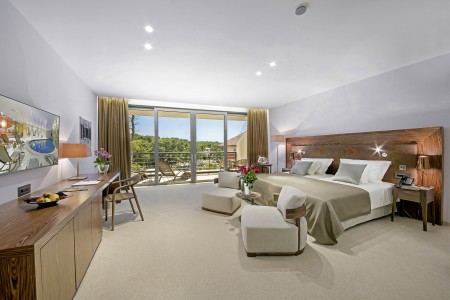 Doppelzimmer Deluxe: ca. 32-52 m², überwiegend mit Balkon. Wahlweise buchbar mit Blick auf den Waldpark Čikat oder mit Meerblick.