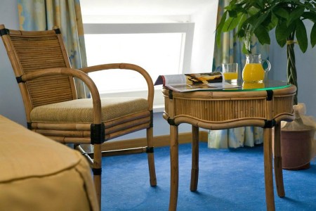 25 Zimmer: ca. 20 m², komfortabel eingerichtet, mit Klimaanlage, SAT-TV, WiFi-Internet (kostenlos), Minibar, Safe, Bad oder Dusche/WC. Wahlweise auch buchbar mit Meerblick. Babybett auf Anfrage gegen Gebühr (15 € pro Nacht) möglich. Loft-Zimmer befinden sich in der obersten Etage mit Dachschräge.