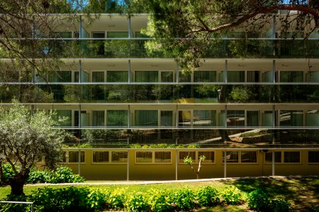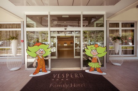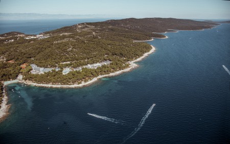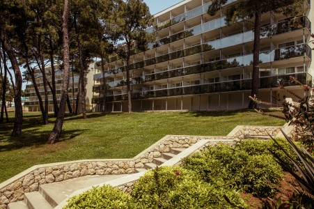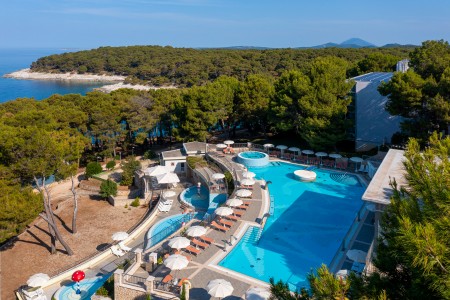 Das familienfreundliche Hotel mit großer Poollandschaft liegt direkt neben dem Hotel Aurora leicht erhöht über der Bucht „Sunčana Uvala“ (Sonnenbucht).
