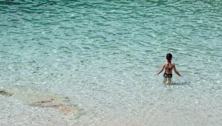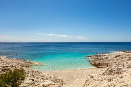 Strand: Zum Felsstrand mit zwei Kiesabschnitten, Liegeflächen, Sonnenschirmen und Liegestühlen (gegen Bezahlung) sind es rund 50 m über Treppen und Wege durch den Pinienwald, zum gebührenpflichtigen FKK-Strand ca. 200 m.