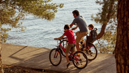 Sport: Im 300 m entfernten Sportzentrum „Veli Žal“ finden Sie 8 Sand-Tennisplätze (davon 2 mit Flutlicht), Tennisschule, Mehrzweck-Sportplatz für Mini-Fußball, Basketball und Volleyball, Fahrradverleih, Mountain-Bikes, Bocciabahn, Kegelbahn, Beach-Volley, Segel-, Paddel- und Tretboote. Minigolfplatz, Beach-Volley und Kinderspielplatz im Pinienwald unterhalb des Hotels.