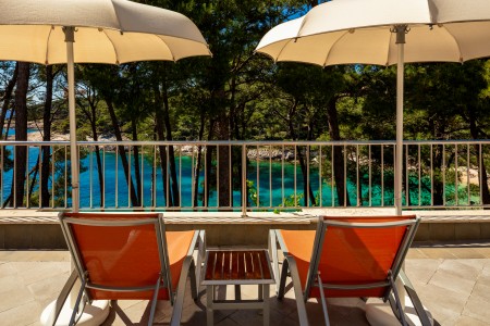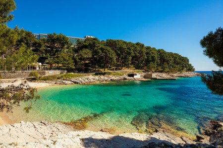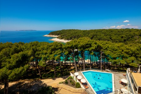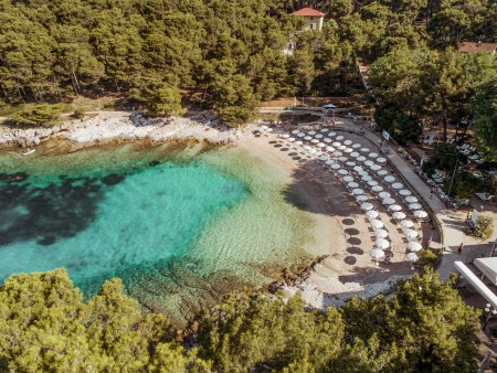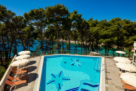 Das beliebte, komfortable Hotel liegt etwas erhöht über der Bucht „Sunčana Uvala“ (Sonnenbucht).