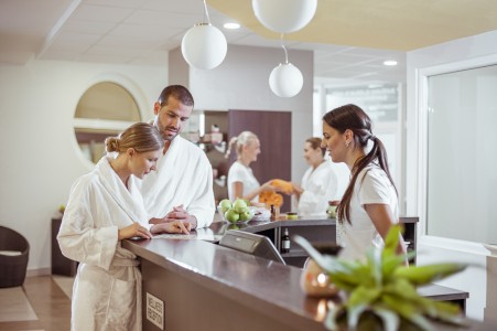 Wellness-Center: Mit Sauna, Dampfbad, Massage, Maniküre, Pediküre, verschiedenen Beauty-Anwendungen, Ruheraum und Fitness-Studio.