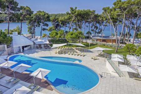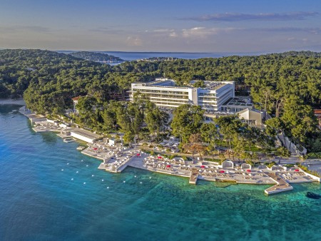 Das Hotel liegt inmitten eines duftenden Kiefernwaldes am Rande der Čikat-Bucht. Neben neuer Einrichtung und zahlreichen Inhalten erhielt das Haus auch die Kategorisierung mit fünf Sternen. Es erwartet Sie ein luxuriöses Ambiente mit vielen Annehmlichkeiten für einen erlebnisreichen und zugleich erholsamen Aufenthalt.