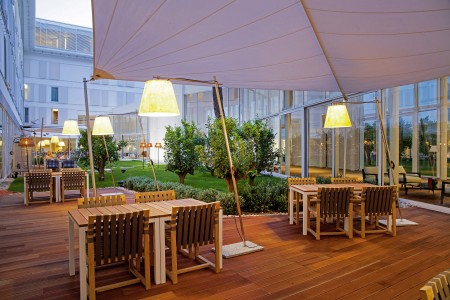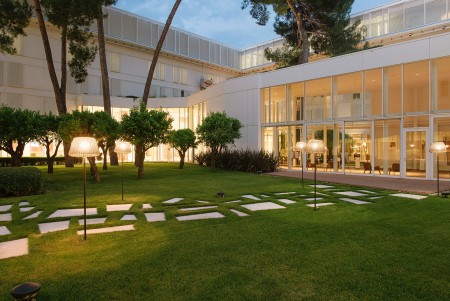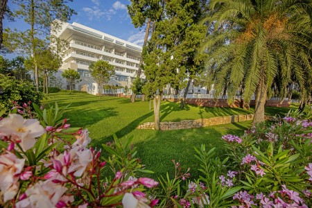 Einrichtungen: Das vierstöckige Hotelgebäude umschließt ein Atrium mit gepflegtem Park, Kräutergarten und Terrasse. Restaurant „Bava“ mit Terrasse, Restaurant „Matsunoki“, Lounge-Bar „Alto Rosso“, mehrere Kongressräume, Boutique. Beheiztes Meerwasser-Hallenbad mit Relax-Bereich und Whirlpool, Meerwasser-Swimmingpool mit Sonnenterrasse und Poolbar. Boutique, Arztpraxis, Roomservice, unbewachter Parkplatz im Kiefernwald vor dem Hotel (gegen Gebühr; 18 € pro Tag oder 100 € pro Woche). WiFi-Internet im gesamten Hotel verfügbar (kostenlos).