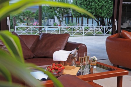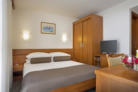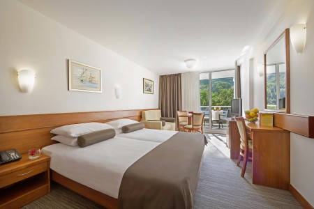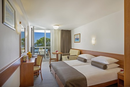 Doppelzimmer Superior: ca. 22 m², zusätzlich mit Schlafcouch (120x190 cm). Wahlweise buchbar mit Balkon zur Parkseite oder mit Balkon zur Meerseite.