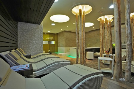 Wellness-Center: „Five Elements“: Spa-Bereich mit Sauna-Center (Finnische Sauna, Infrarot-Sauna), Whirlpool für 4 Personen, Massageduschen, Eisbrunnen und Relax-Zone – Nutzung im Preis enthalten. Gegen Gebühr werden Maniküre, Pediküre, verschiedene Massagen, kosmetische Behandlungen und Solarium angeboten.